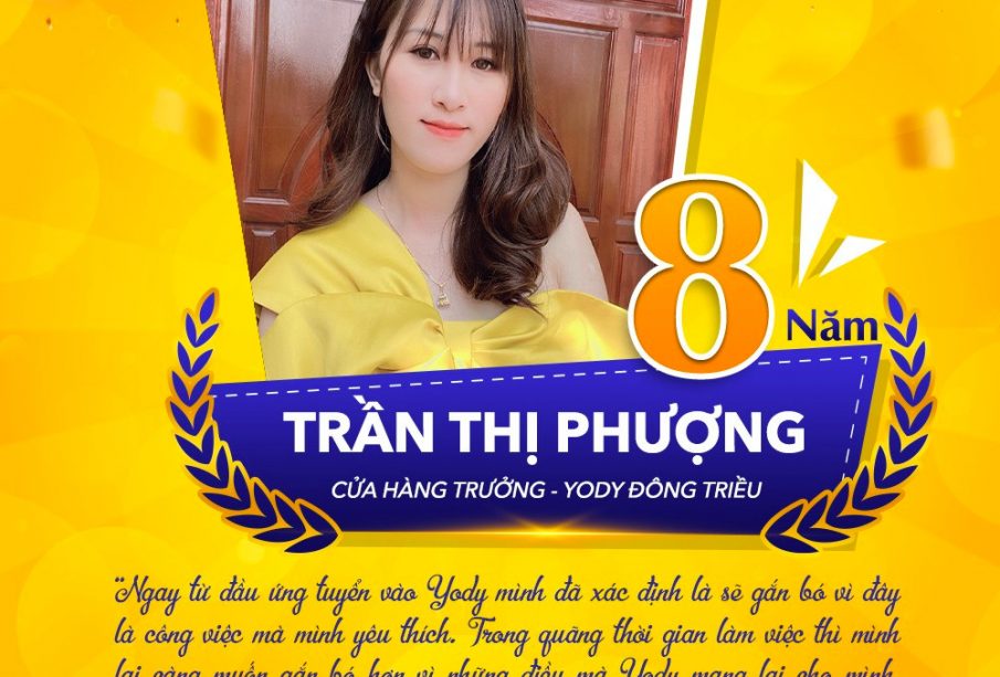 YODY xin chào. Mình là Trần Thị Phượng – Cửa hàng trưởng YODY Đông Triều. Mình đã gắn bó với YODY được gần 8 năm rồi.