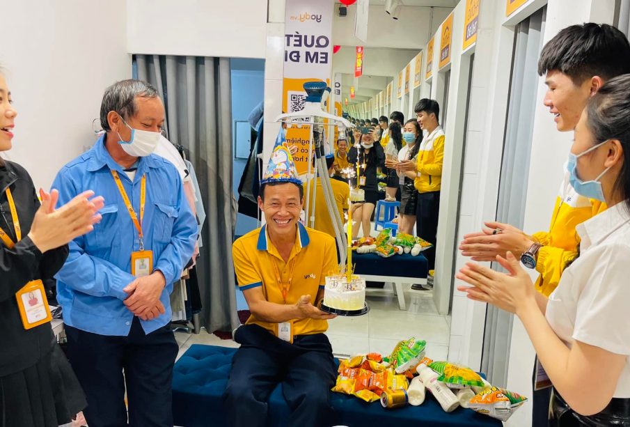 (Nụ cười của chú bảo vệ khi được cửa hàng tổ chức sinh nhật)