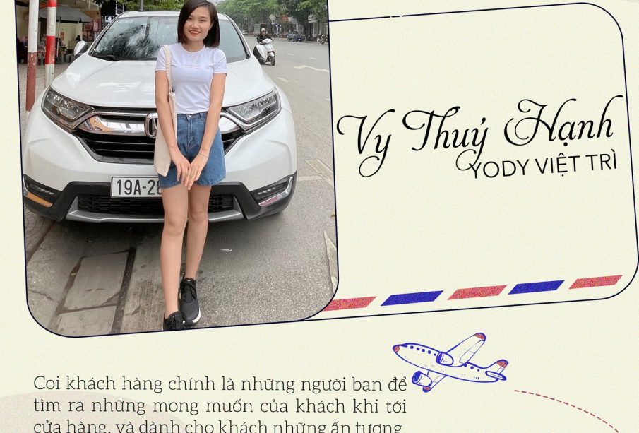 Chào các bạn mình là Vy Hạnh đến từ vùng đất tổ Vua Hùng và nơi đây có YODY Việt Trì. Cũng tại đây mình đã có được 1 công việc yêu thích và Hạnh rất trân trọng điều đó. Ở một vị trí chuyên gia tư vấn bán hàng, Hạnh luôn tâm niệm với tất cả kiến thức kĩ năng đã học hỏi và trau rồi được trong suốt quá trình học tập và làm việc tại YODY, cộng thêm sức trẻ và niềm đam mê thì ngọn lửa nhiệt huyết với công việc sẽ cháy như tốc độ con số doanh thu tăng lên theo ngày.